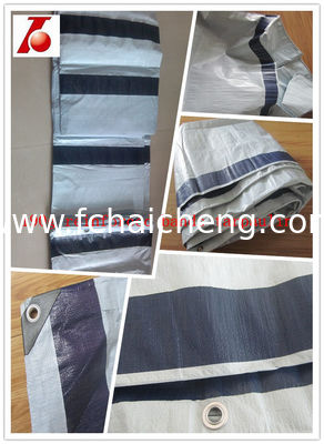 PE tarpaulin sheet with reinforced 6bands, bands width 7.5cm